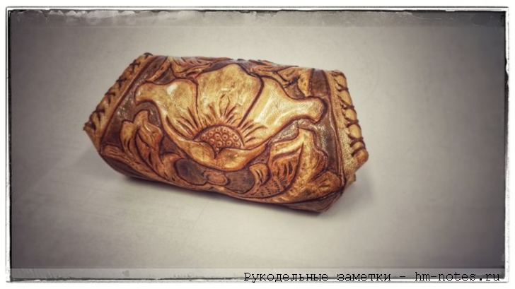 Также чехол для очков с застёжкой на кнопке можно сшить из квадратного кусочка кожи. Края изделия сшиваются кожаным шнурком или толстой нитью.