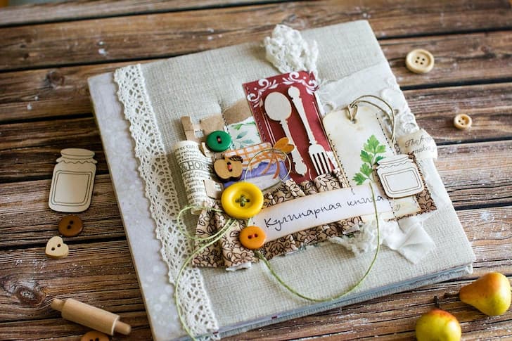 Прекрасным подарком для мамы станет кулинарная книга, сделанная своими руками в технике скрапбукинг. Наверняка у неё много разных дел и она просто не успевает разобрать все рецепты записанные на клочках бумаги. Для кулинарных рецептов существует множество специальных скрапбукинг наборов. Перепишите все мамины заметки на листы из набора для рецептов «Цветочная нежность», дополните их высечками из набора «Sugar and Spice» и надписью «Книга рецептов».