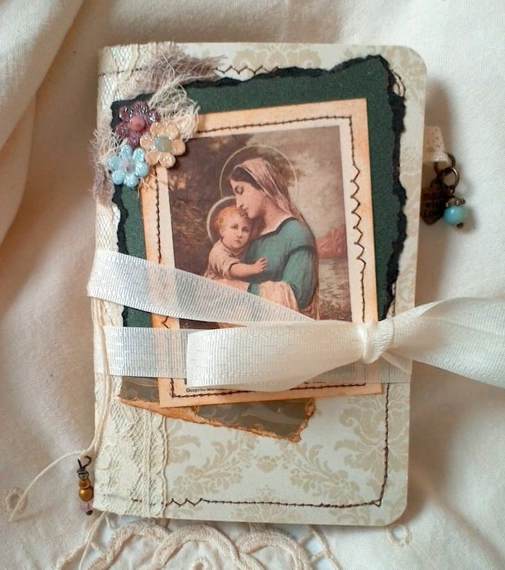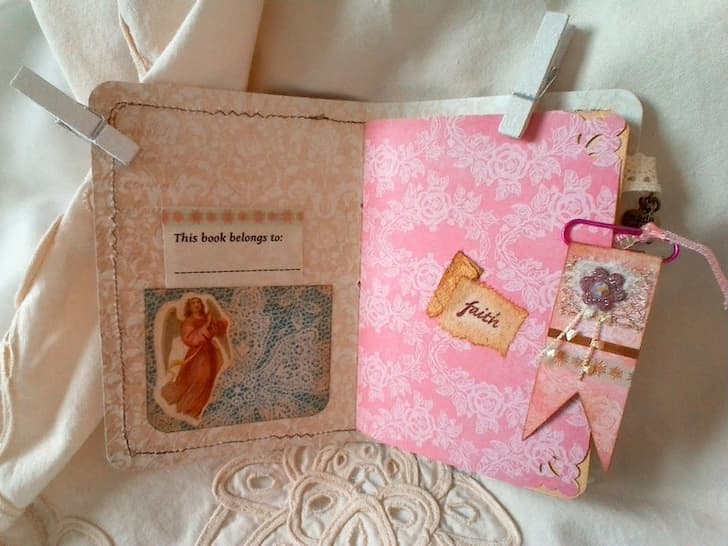 Отличным подарком для религиозного человека может стать записная книжка, оформленная в технике скрапбукинг. Туда он может записывать молитвы, тексты церковных песнопений, свои размышления о боге. Для оформления используйте высечки, чипборды и наборы бумаги с изображением ангелов и цветов.