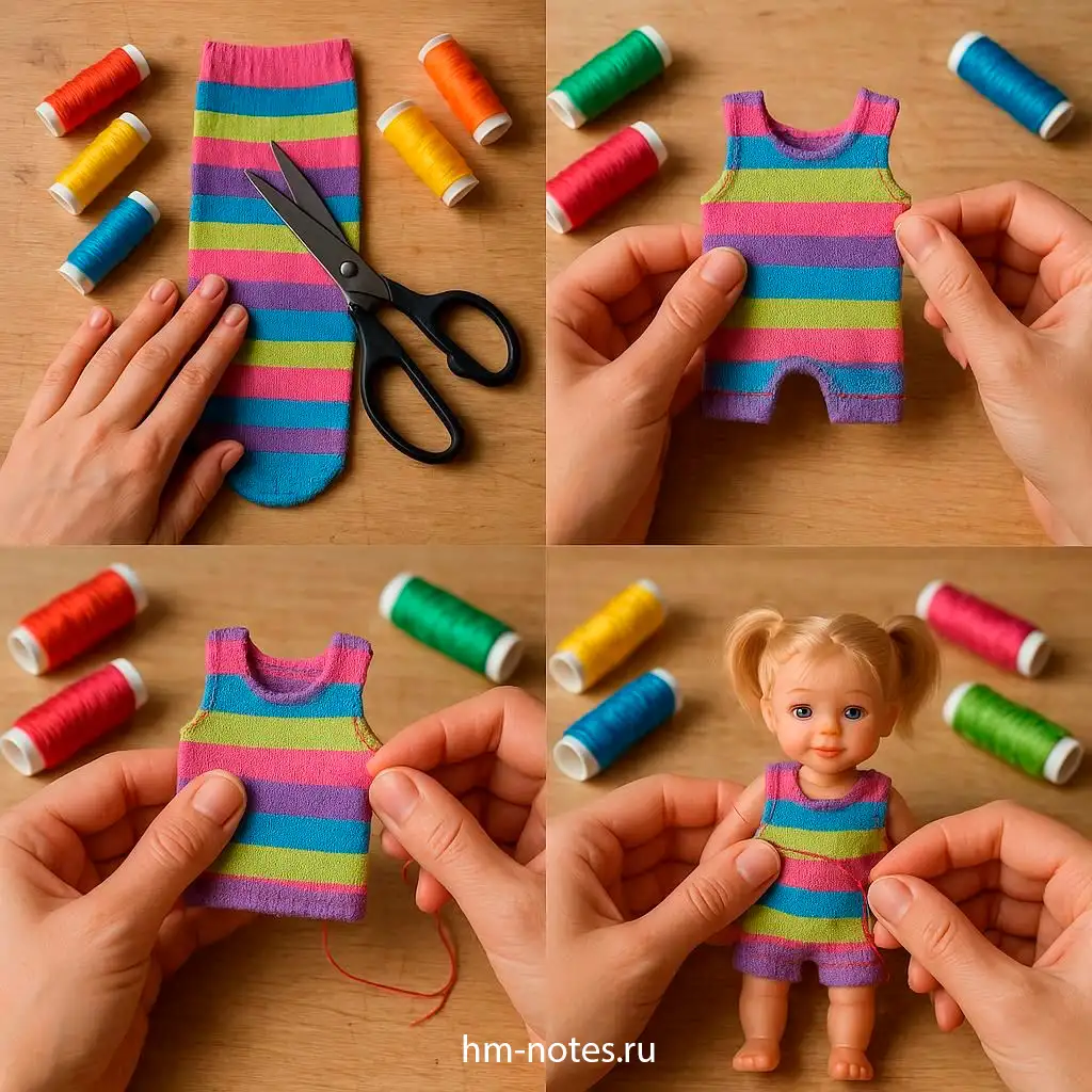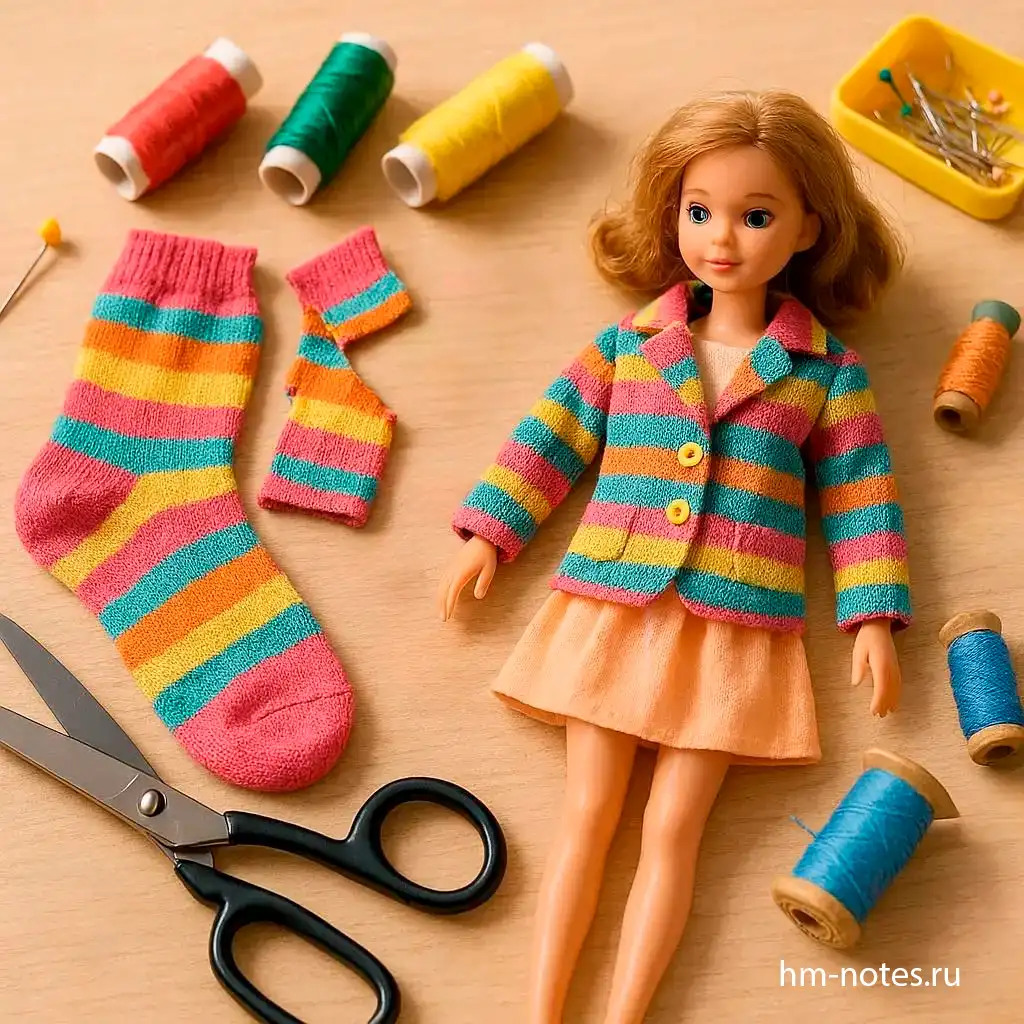 Иногда встает вопрос, из чего же быстро сделать обновку для кукол. На помощь придут обычные носочки, из которых можно соорудить целый гардероб, от белья до модного джемпера. Это доступный для всех материал, из которого легко шить.