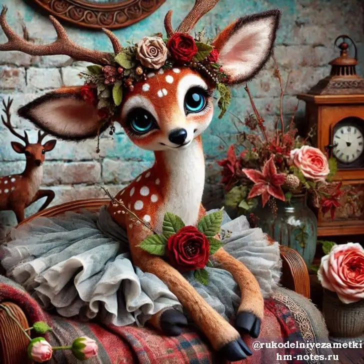 Эти красивые изображения очень милых игрушечных оленей созданы с помощью нейрогенерации и могут быть использованы, как референс для создания дизайна игрушки или в качестве открыток для скрапбукинга.