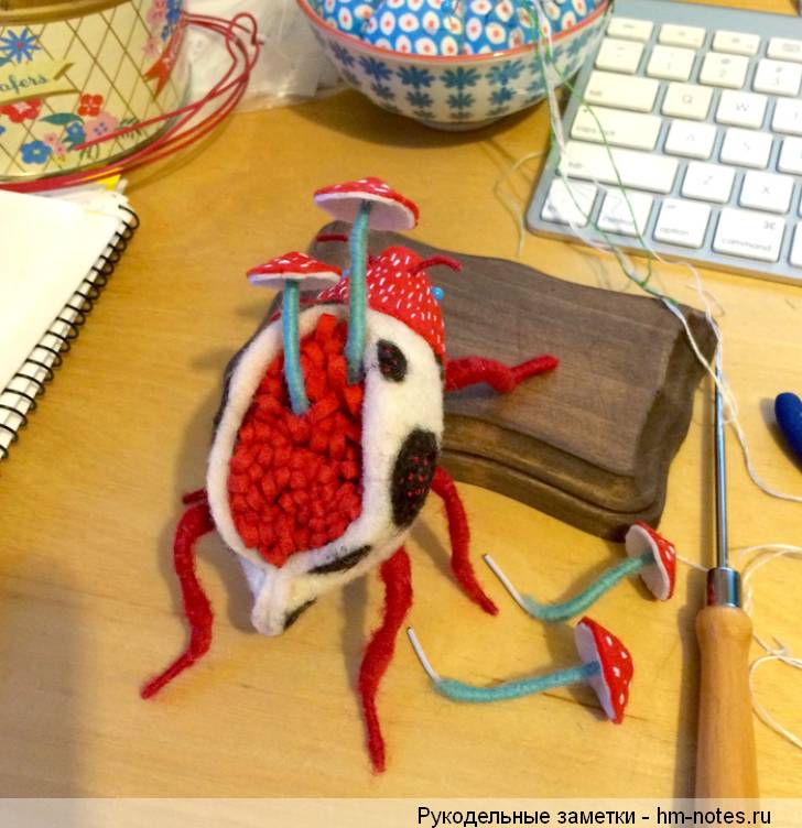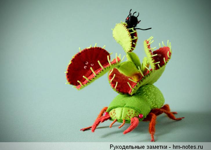 Мир богат необычной живностью, о существовании которой многие даже не догадываются. Например, существуют грибы, паразитирующие на насекомых. Художница Хинэ Мидзусима с помощью фетра изобразила жуков в симбиозе с грибами и даже с растением Венерина мухоловка. Несмотря на то, что такое сосуществование является настоящей трагедией для живых жуков, дизайн этих войлочных поделок выглядит очень круто и необычно.