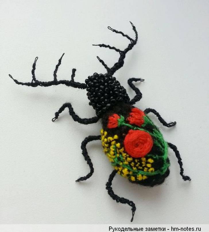 Кроме того, насекомых можно расшивать бисером, блёстками и пайетками, добавить деталей из полимерной глины.