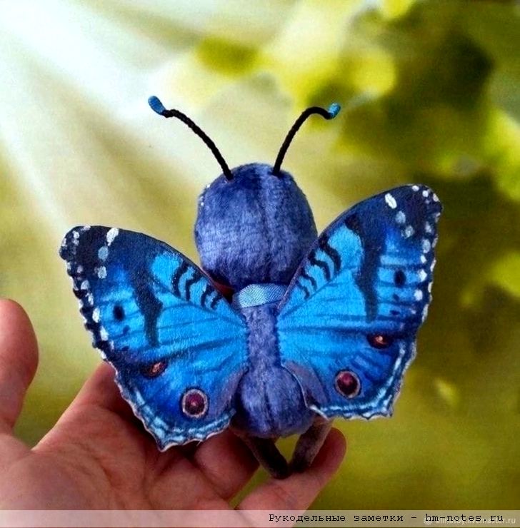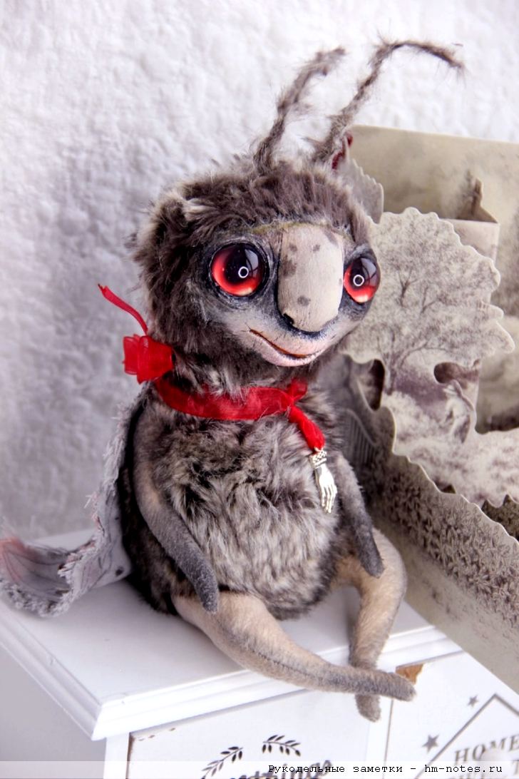 Этот забавный мотылёк был изготовлен в смешанной технике. Здесь может быть использован велюр (плюш, нерпа, вельбоа), искусственный или натуральный мех и запекаемая полимерная глина. Автор игрушки Дарина Сафонова (@daryina_art), по её мастер-классам и выкройкам вы можете быстро освоить данную технику.
