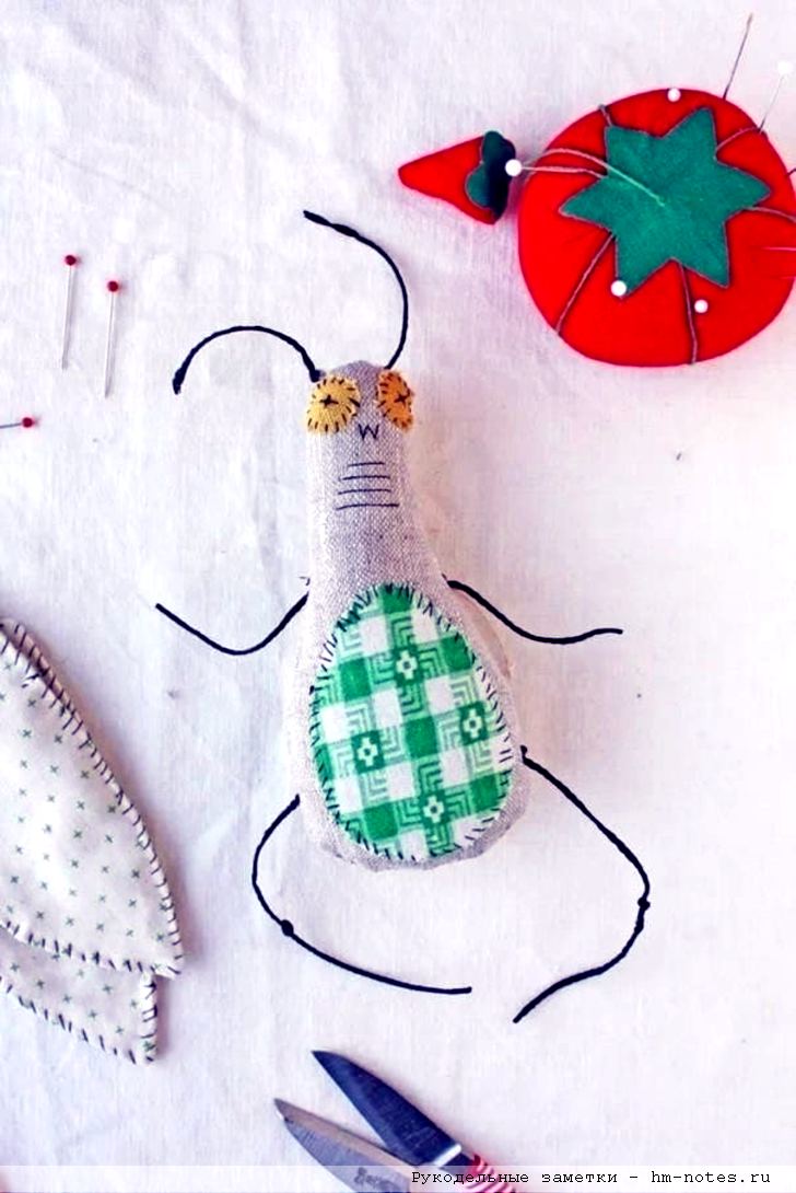 Начать надо с создания какого-нибудь тряпичного жучка. Это будет своеобразной арт-терапией. Мы ведь привыкли делать кукол, мишек, заек, а ведь насекомые имеют совершенно иное строение. Тут уж наши творческие «шарики-ролики» закрутятся и завертятся на полную мощь.