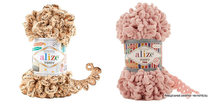 Рассматривая разновидности пряжи Alize, не получится обойти вниманием и артикул Пуффи, у которого нитка похожа на петельку с имитацией меха. По типу эта пряжа относится к объемным, что дает возможность быстро вязать из нее коврики, пледы даже без применения инструментов, а просто руками. Также это хорошее решение для изготовления шапок, шарфов и других изделий любой сезонности.