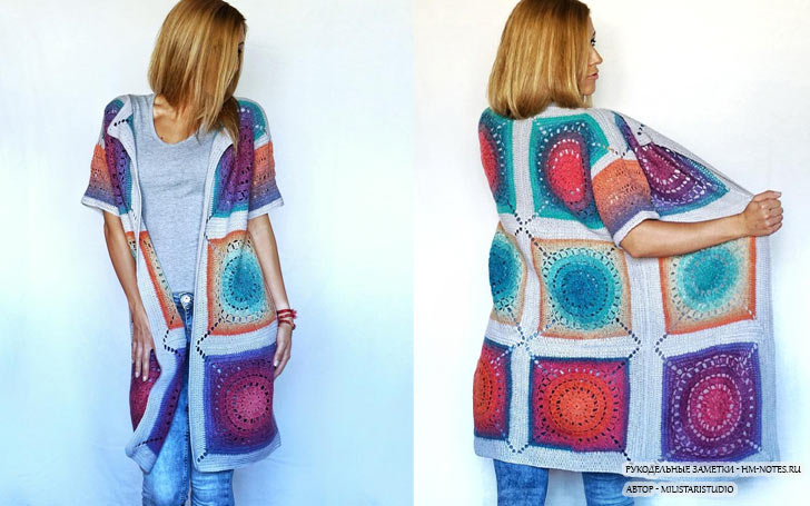 Градиент был самым популярным принтом коллекций весна-лето 2020 и будет актуальным еще долгое время. Пряжа Дива Омбре Батик прекрасно подходит для вязания летних вещей с мягким переходом из одного цвета в другой. Начинающие могут попробовать связать кардиган из бабушкиных квадратов, который неплохо смотрится с джинсами и футболкой.