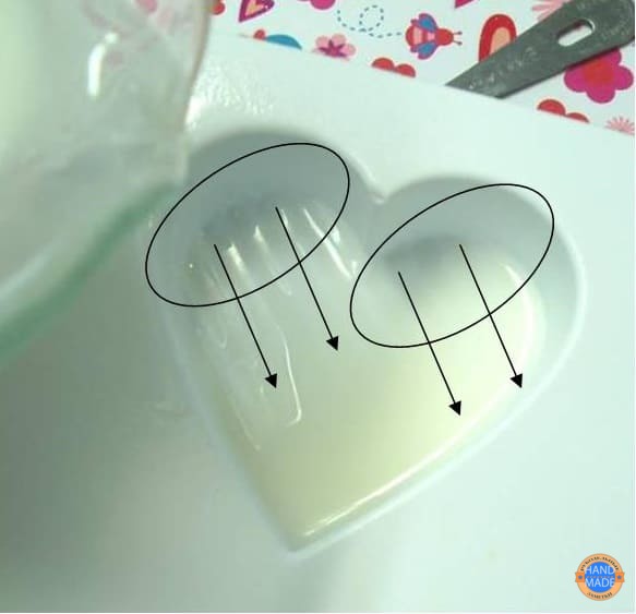 2. Залив жидкую основу в форму, не трогайте мыло и не передвигайте форму, пока масса не застынет.