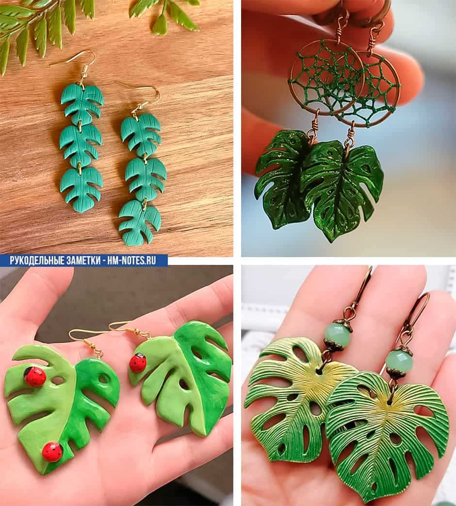Обратите внимание, как по-разному может выглядеть дизайн серёжек в виде листа монстеры (см. изображение).