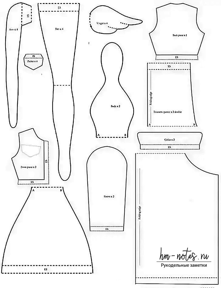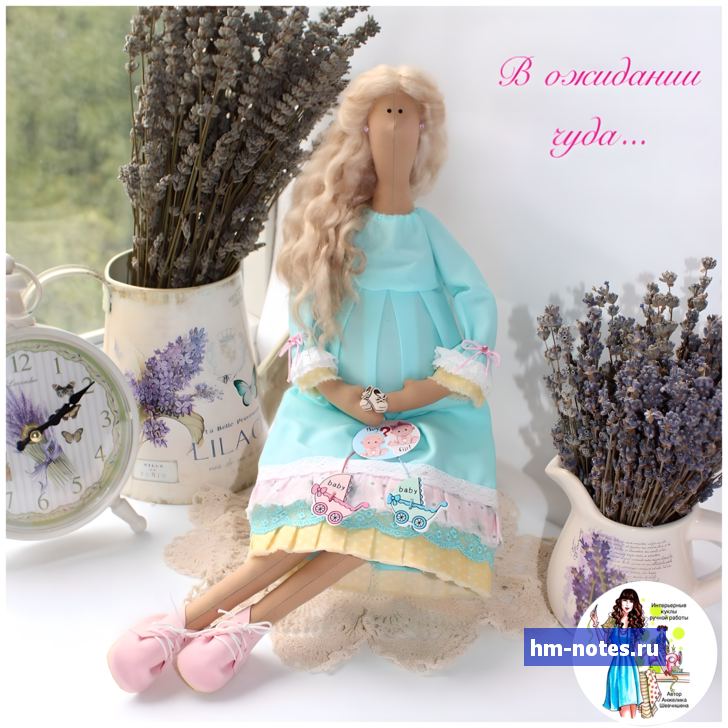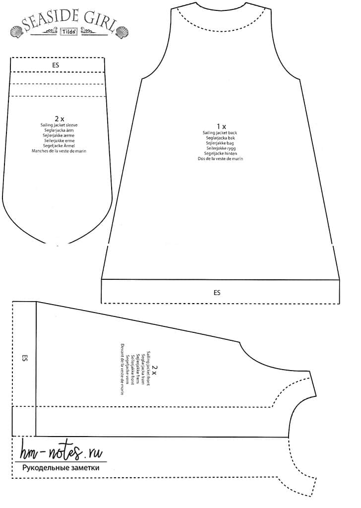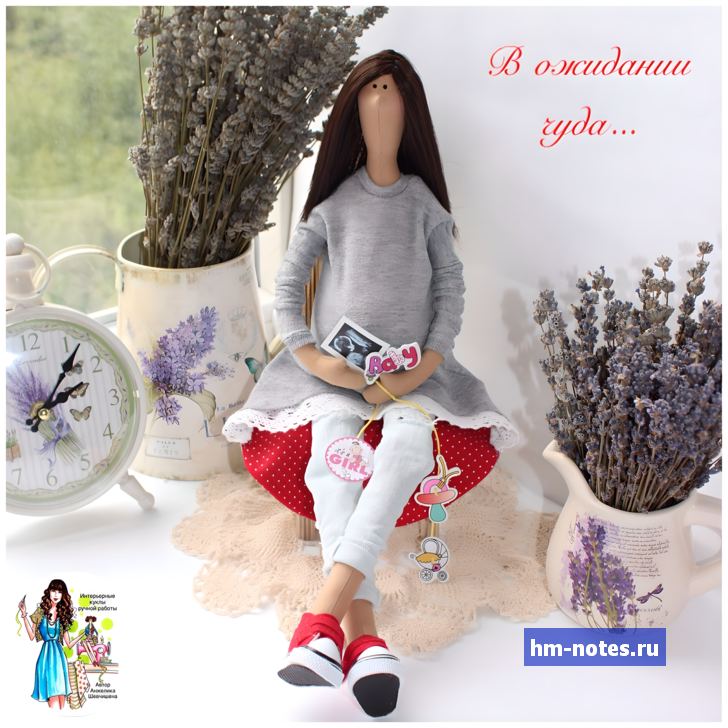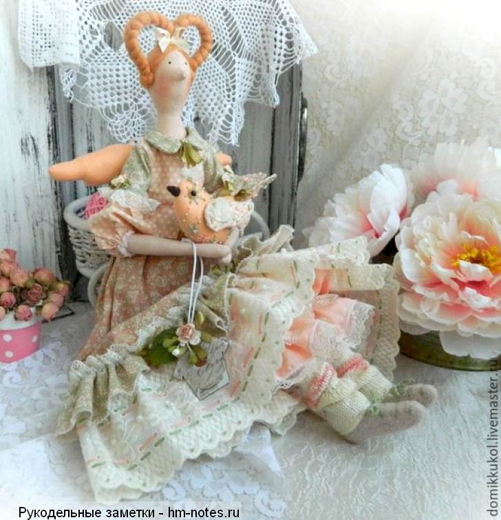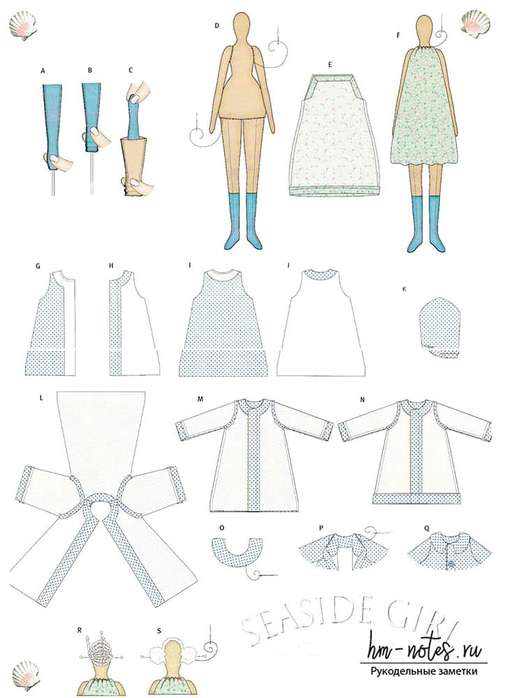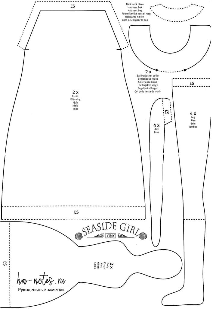 Выкройка лежащей на диване Тильды в домашнем платье.