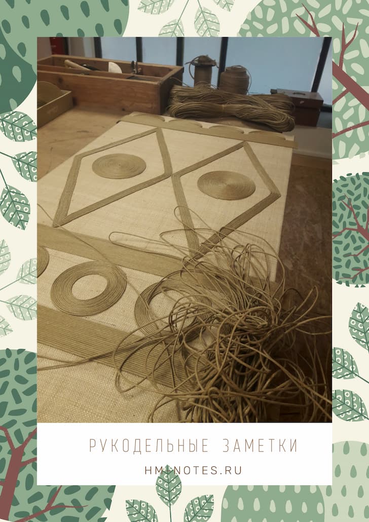 Если специальной канвы не нашлось, то тонкие верёвки натягивают вертикально, а через них перпендикулярно протягивают отрезки каната, перекрещивая их между собой.