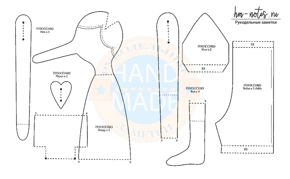 🏠 Главная ↔️ Выкройки и идеи текстильных кукол ↔️ Выкройки кукол Пиноккио и Буратино