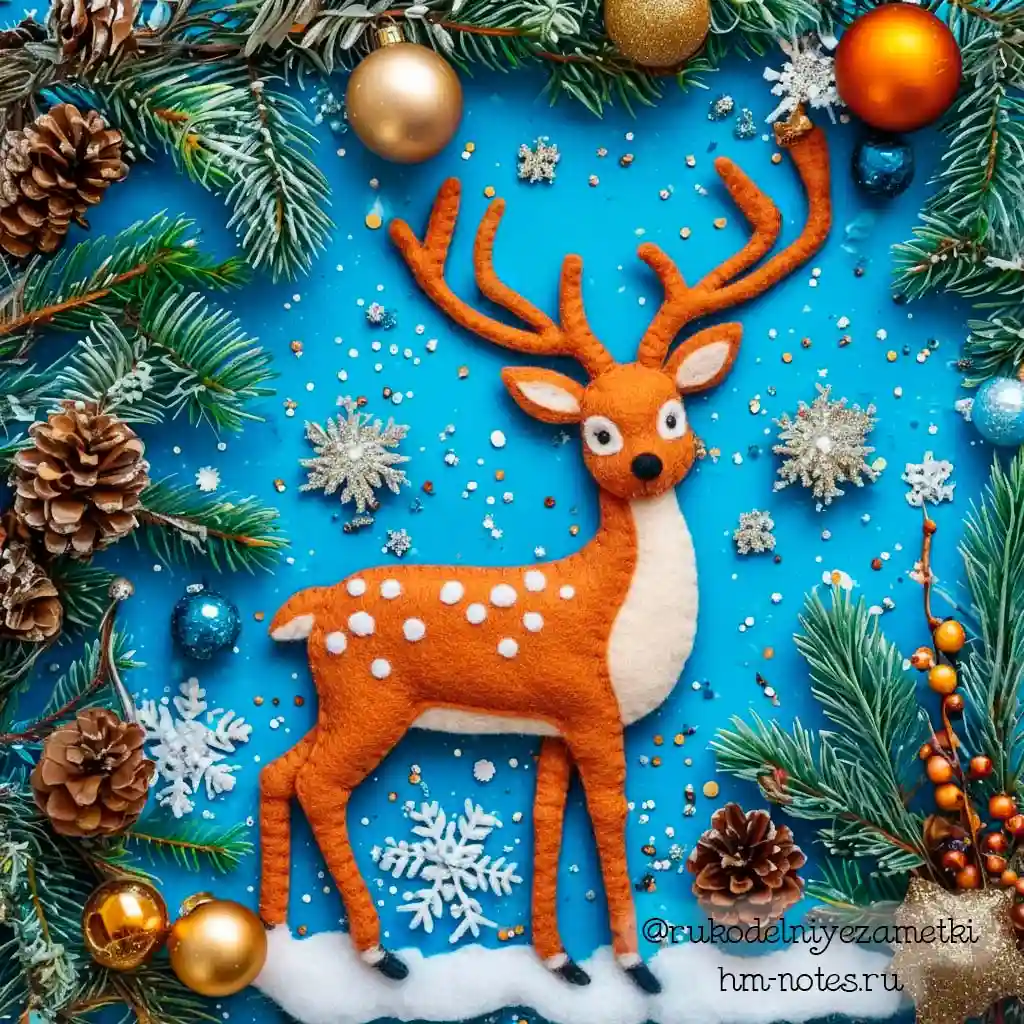 Варианты оформления оленят сгенерированы с помощью ИИ. Почитайте нашу статью, как составлять промты, чтобы получались красивые дизайны игрушек.