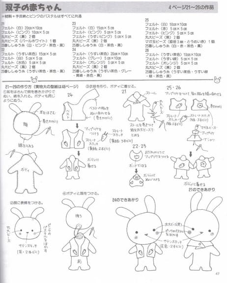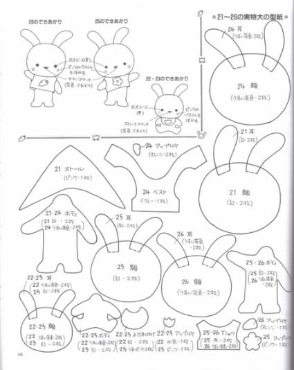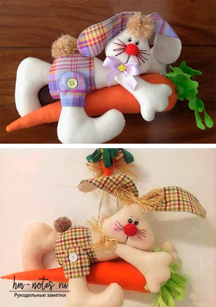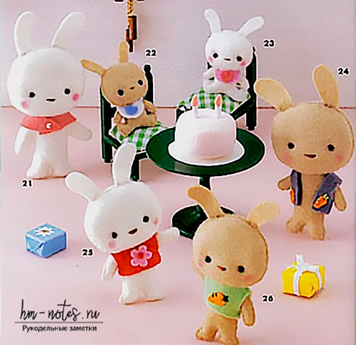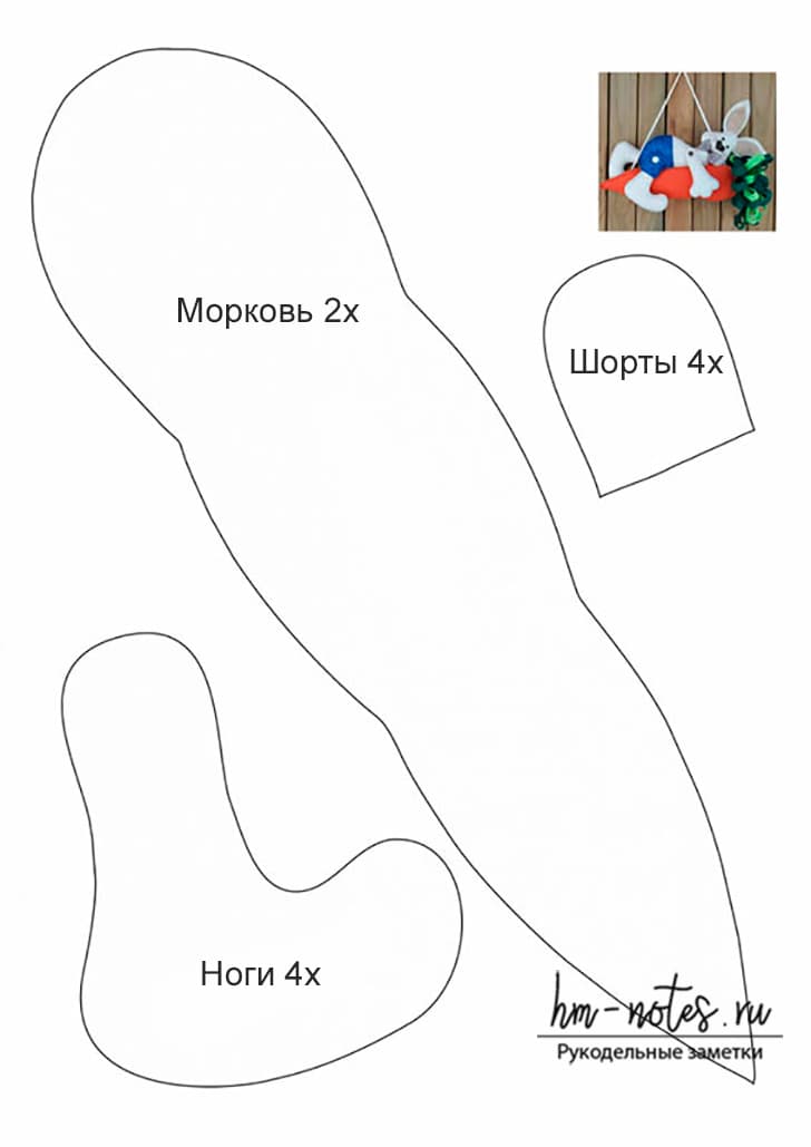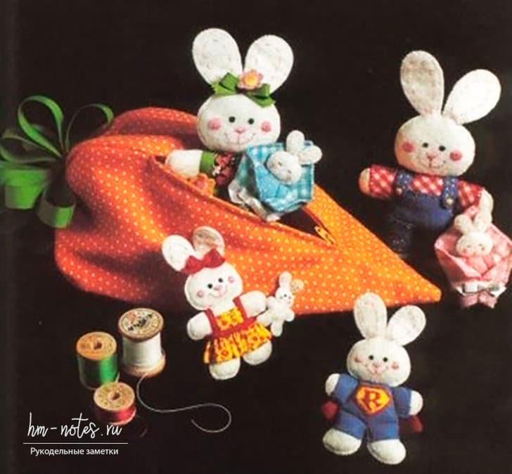 Выкройка целой семьи кроликов и сумочки в виде морковки