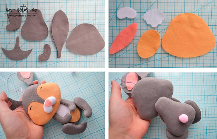 На самом деле кроить и шить игрушечных кроликов из фетра совсем не сложно. Все мы знаем, как выглядит кролик и чтобы сделать выкройку, необходимо лишь повторить контур его тела, а дальше дело техники и вашей фантазии. Если самостоятельно сделать шаблон вы затрудняетесь, то воспользуйтесь нашей большой подборкой разных выкроек кроликов по которым вы без труда сошьёте много милых игрушек.